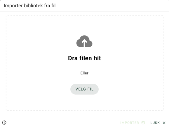 Gå til bibliotek og velg importer bibliotek fra fil.