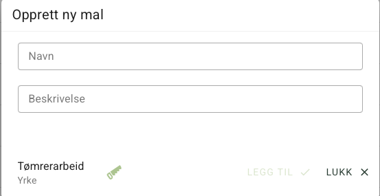 Trykk på Opprett ny mal og fyll inn navn og beskrivelse på malen og trykk Legg til.