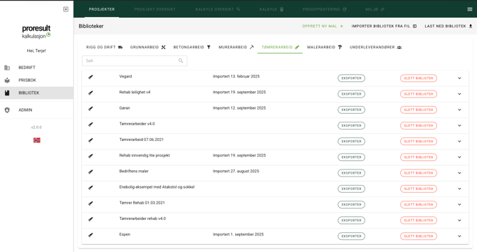 Slik importerer du et bibliotek til Proresult Kalkulasjon
