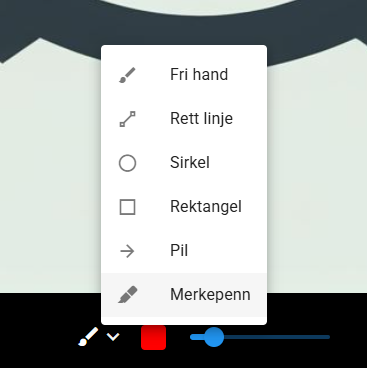 Med denne knappen kan du tegne på bildet. Du kan både tegne fritt og legge inn linjer, rektangler eller sirkler i ønsket farge.