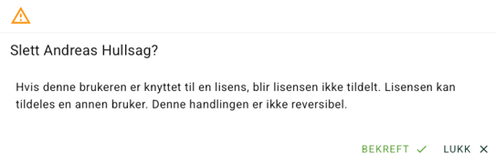 For å fjerne en bruker, velg slett bruker på den aktuelle personen.