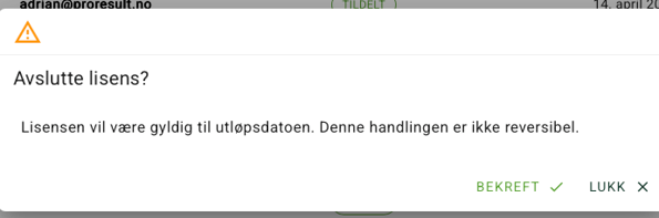 Merk at en avsluttet lisens ikke kan gjenopprettes.