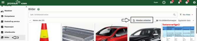 For å legge til flere etiketter klikker du på 'håndter etiketter'. Administrator kan også gjøre denne handlingen i appen.