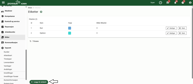 Du blir tatt videre til oversikten over etiketter hvor du kan redigere, slette eller legge til nye etiketter.