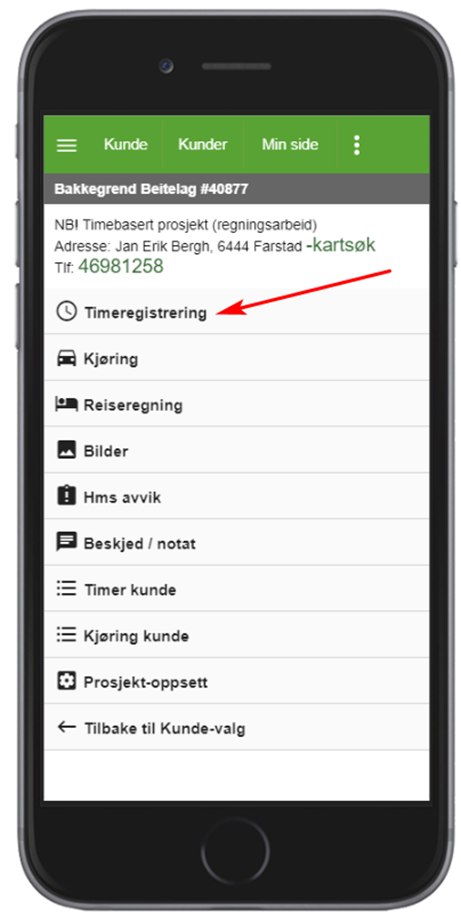 Velg arbeidsart for å fordele timene på ulike typer arbeid. Spør kunden om du er usikker!