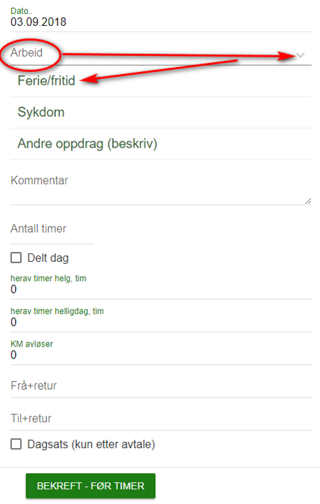 NB: for at lønn og fakturering skal bli riktig, bør du ser over og kontrollerer registreringa før du klikker på ‘’Bekreft – Før timer’’