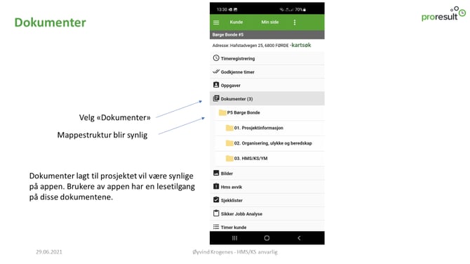 I denne artikkelen vil en finne diverse HMS/KS relatert dokumentasjon som er tilknyttet App-delen av Proresult systemet.
