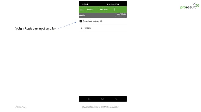 Her vises det hvor brukeren finner “Avvik” i app delen.