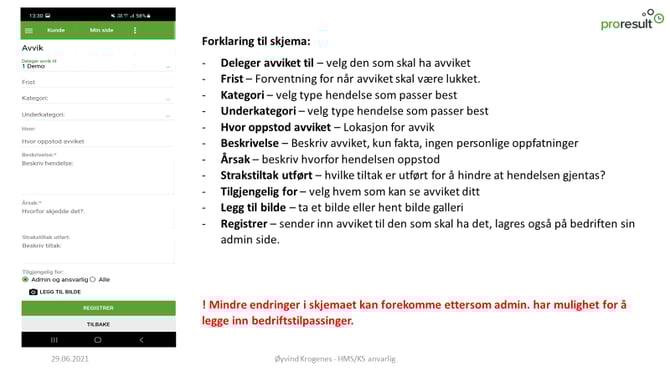 Her er det forklaringer til de ulike punktene i avviksskjemaet.