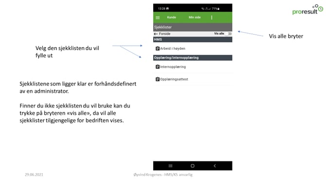 Her kan en velge å “Vis alle” slik at bruker får tilgang til alle sjekklister i firmaet.