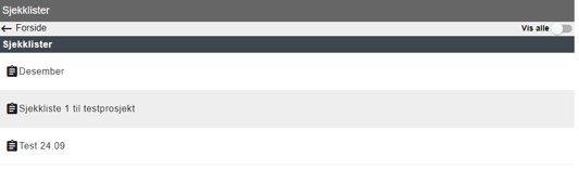 Funksjonen ligger oppe til høyre og heter “Vis alle” - når denne blir huket på får du opp alle sjekklister som er tilgjengelige i firmaet og som du kan velge.
