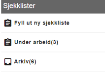 I menyen under “Sjekklister” vil du også kunne se en funksjon for “Arkiv”. Her vil de tidligere utfylte sjekklistene ligge som historikk. Om det er påbegynte sjekklister som ikke er utfylt vil de også legge seg i menyen som “Under arbeid” - da kan en annen arbeider fylle ut og fullføre sjekklisten om ønskelig.