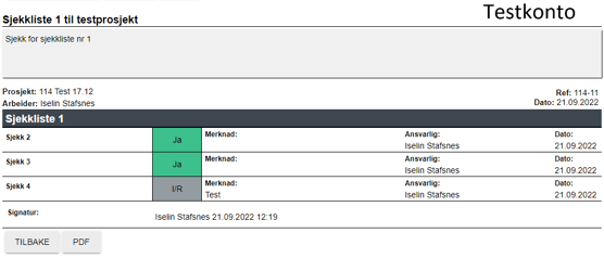 Du kan ta ut en PDF av sjekklisten når den er ferdig utfylt og sendt inn.