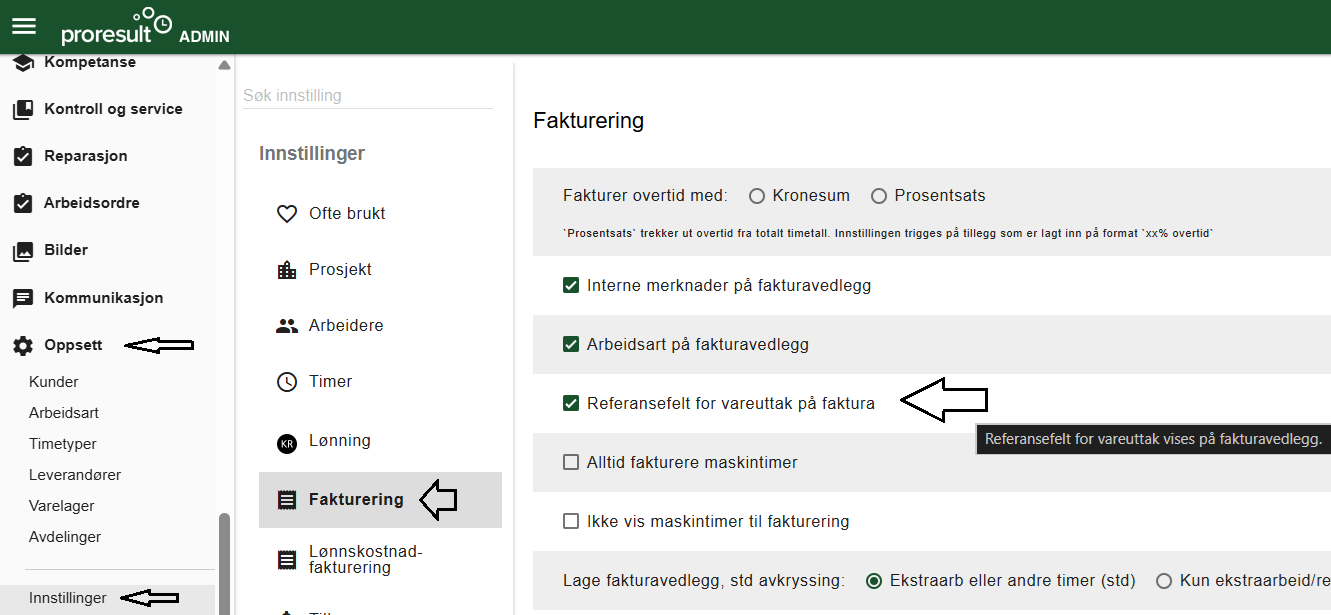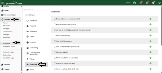 Innstillingene finner du under Oppsett → Innstillinger → Vareuttak