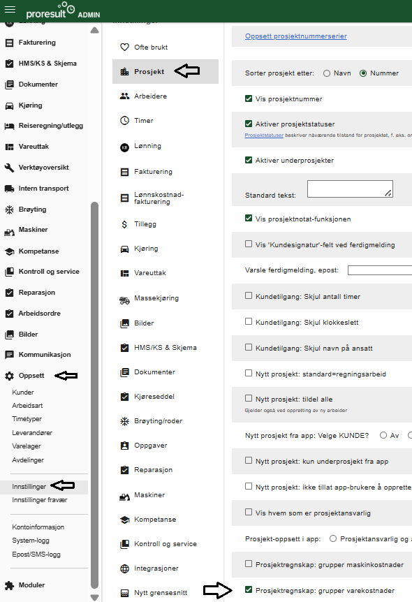 I de andre modulene kan det finnes innstillinger som påvirker varene.