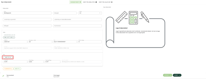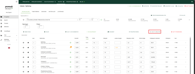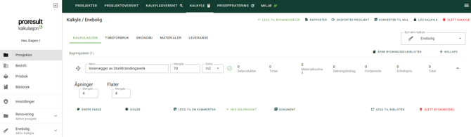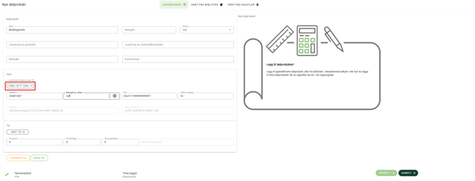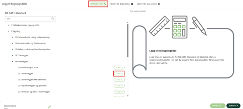 - Gå inn i kalkylen der bygningsdelen skal legges til.