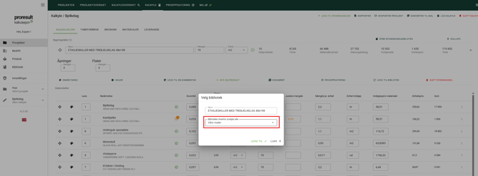 Når alle materialer, mengder og kostnader er lagt inn, er det lurt å lagre bygningsdelen i et eget bibliotek. Dette gjør det enkelt å bruke den på nytt senere og sparer mye arbeid over tid.