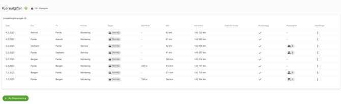 Her kan du opprette nye kjøreutgifter, redigere eller slette.