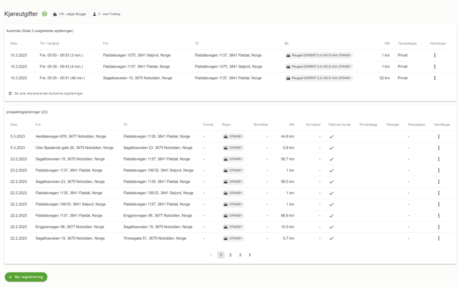 Om Automile integrasjonen er aktivert kan du finne de tre siste uregistrerte turene øverst på visningssiden som vist på Automile.