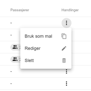 Ved å klikke på handlingsknappen (3 prikker nedover), viser alle handlingene som er mulig for en kjøreutgift.