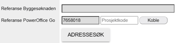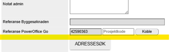 Løsningen er å gå inn på prosjektet i Proresult, fylle ut feltet referanse PowerOffice Go med prosjektkoden (prosjektnummeret) til prosjektet i PowerOffice Go, og trykke koble. Når du ser "prosjekt koblet!", er koblingen lagret.