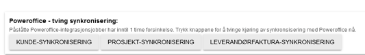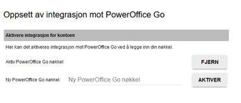 Den andre muligheten er at integrasjonen er deaktivert i integrasjonsinnstillingene (se "hovedbryteren" øverst på siden for integrasjonsinnstillingene). Når du aktiverer bryteren blir knapper og felt som har med PowerOffice Go å gjøre synlig i systemet.