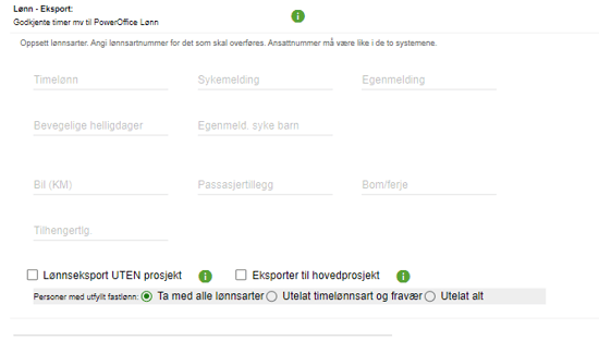 I PowerOfficeGo integrasjonen tilbyr vi en utvidet funksjon i oppsettet for lønnseksport.