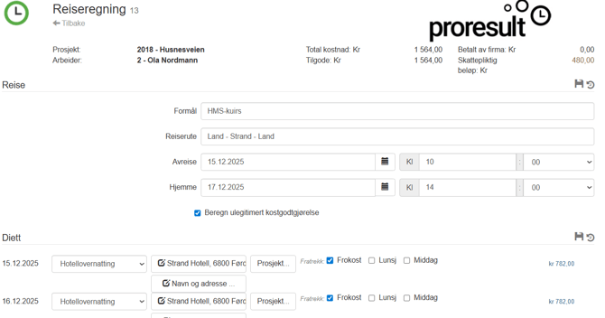 Reiseregning/utlegg er en av flere moduler i Proresult: