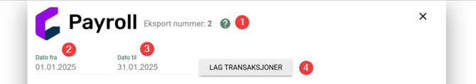 NB: Dersom grunnlaget for eksporten endres – for eksempel at timelønnsarten justeres eller at de opprinnelig godkjente timene redigeres – vil «LAG TRANSAKSJONER» opprette nye transaksjonslinjer for eksporten.